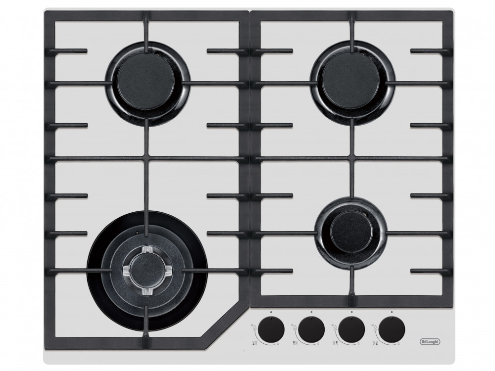 Встраиваемая варочная панель Delonghi/ Встраиваемая варочная панель Delonghi, газ, 60 см, 4 конфорки, WOK, автоподжиг, газ-контроль, чугунные решетки, цвет белое стекло