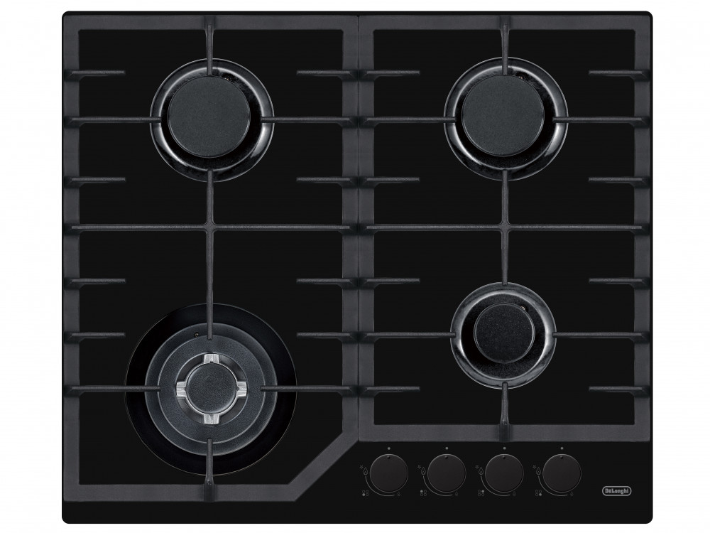 Встраиваемая варочная панель Delonghi/ Встраиваемая варочная панель Delonghi, газ, 60 см, 4 конфорки, WOK, автоподжиг, газ-контроль, чугунные решетки, цвет черное стекло