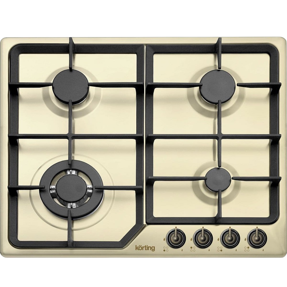 Встраиваемая варочная панель Korting/ Газ, Provence, 60x51 см, газовая, независимая, электроподжиг, газ-контрол, чугунные решетки, адаптер для WOK-конфорки, слоновая кость, цвет ручек-бронза