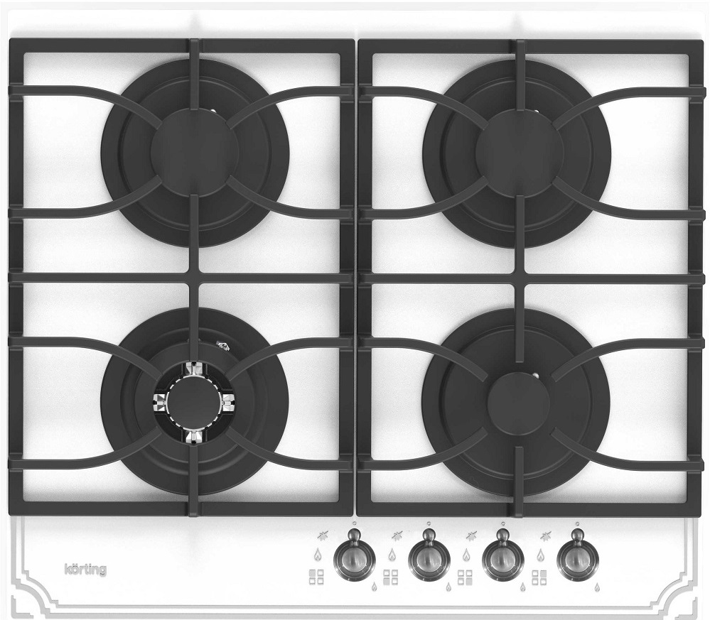 Встраиваемая варочная панель Korting/ Встраиваемые газовые панели Korting,ширина 60 см,стекло,белый,подставка Wok