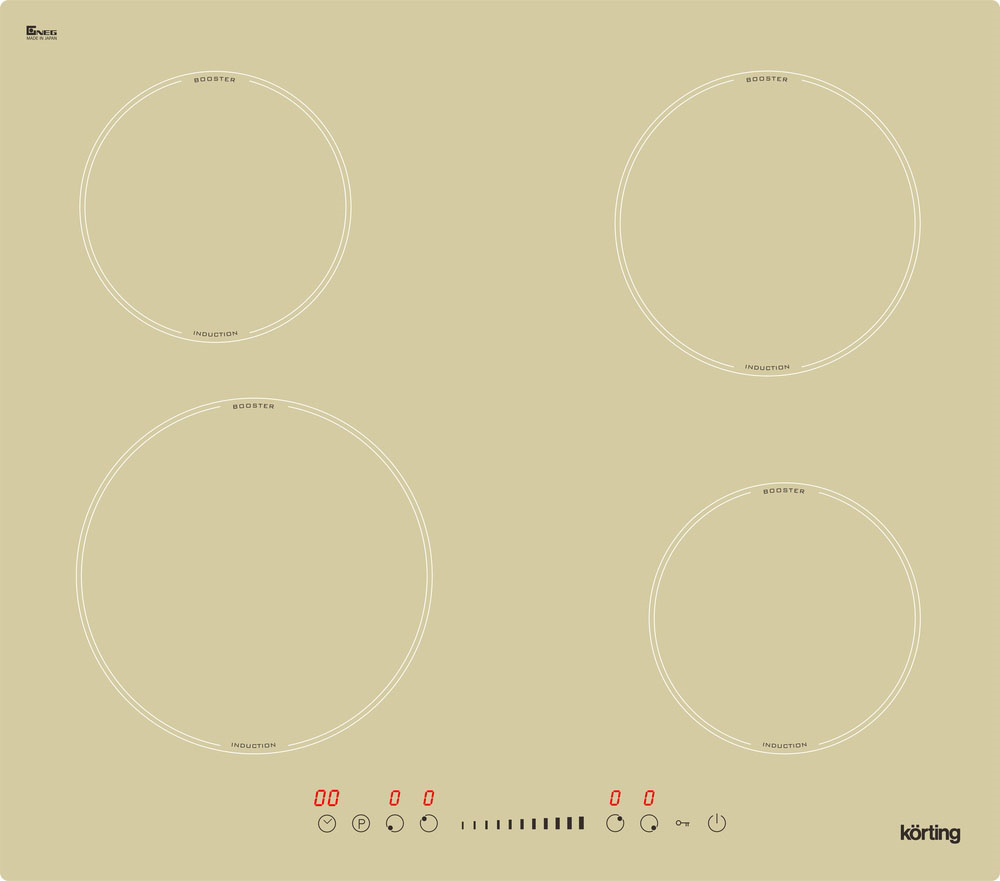 Встраиваемая варочная панель Korting/ 60 см, сенсорное управление Slider Touch, 4 индукционные зоны приготовления, LED индикация для каждой зоны, Таймер, Функция "Защита детей", Автоматическое отключение, Индикация остаточного тепла, Booster для всех зон, TWIN Booster для 1ой зоны, Цвет: бежевый, Дизайн рамки: без рамки