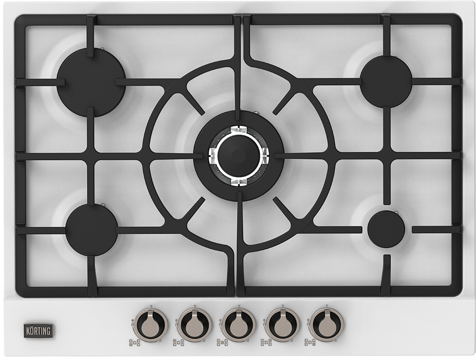 Встраиваемая варочная панель Korting/ Газ, 70см, Поворотные регуляторы, Газ-контроль, 5 высокоэффективных газовых конфорки, Чугунная подставка WOK, античный белый, ручки хром