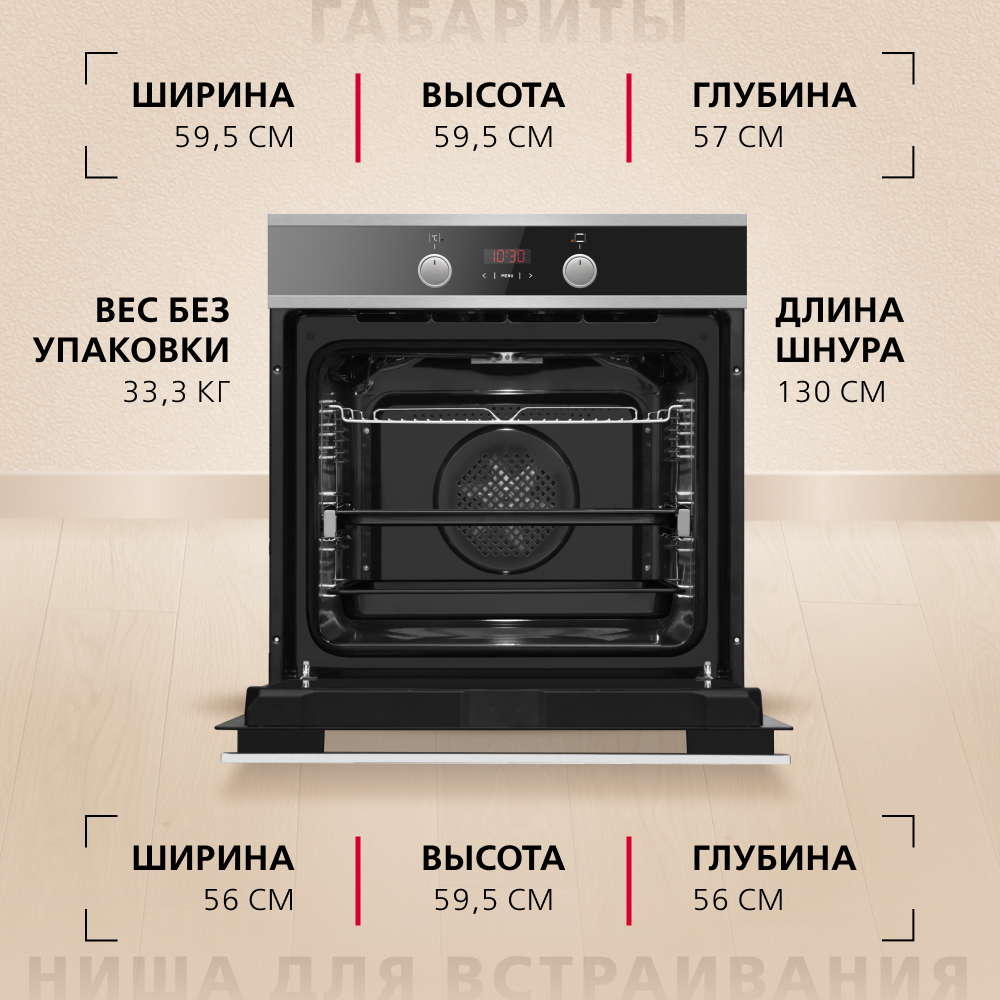 увеличенный объем 75 литров, 2 протвня большего размера, телескопические направляющие, 11 программ, рецепты на дверце